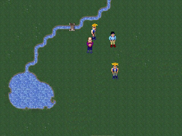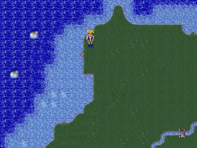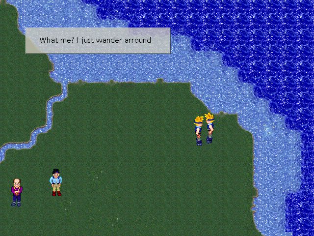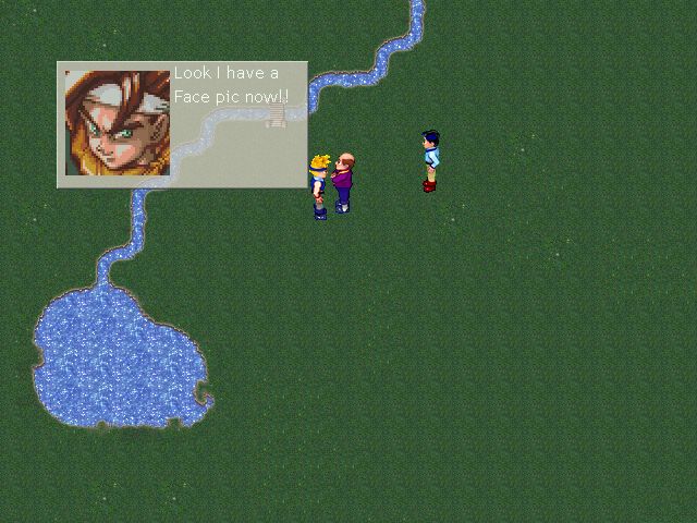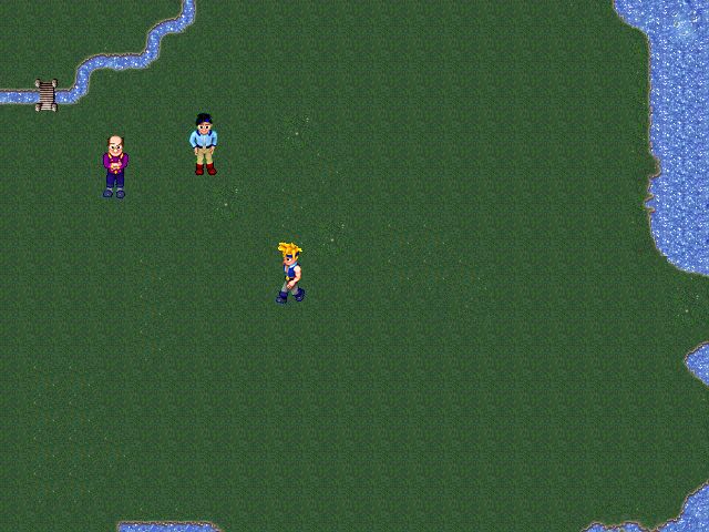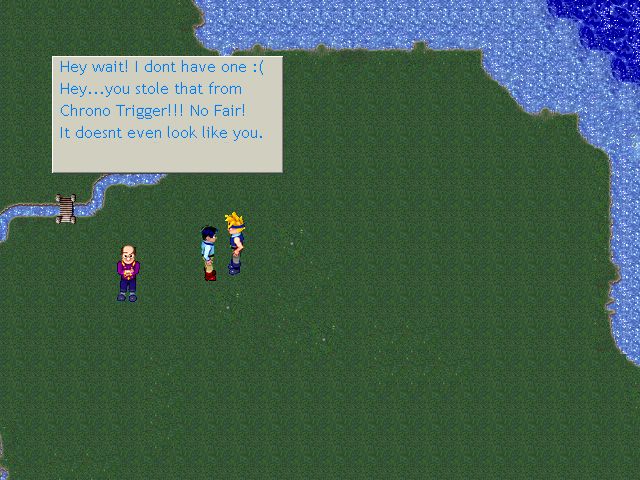 The graphics are really awesome. The screen is set up in 640x480. The sprite animation is a little off, but that is just because he is still playing with the timing variables. He gives an options dialogue before the demo starts to change these values manually. The sprites themselves are quite good, having much better detail and shading than anything in RM2k. The boots on the hero aren't quite right...but who cares? Just look at these sprites! (there are screenshots at the bottom of the page)