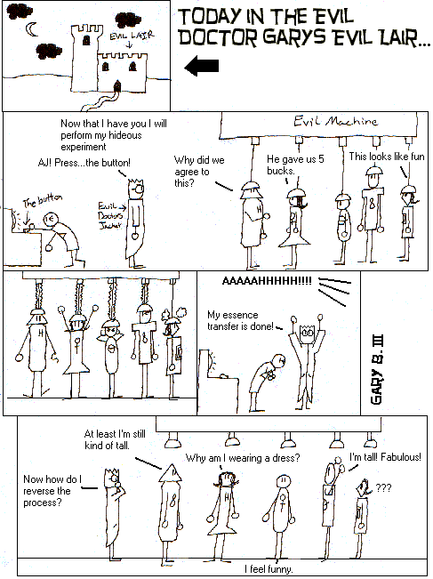This comic is confusing if you don't know the symbols. Aeric is now Aubrey, Aubrey is now Denver, Denver is now Sean, Sean is now Aeric, and Loni's machine malfunctioned.