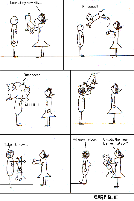 That cat is evil. It attacked Denver and ripped his hand up pretty good. We're all scared of it.
