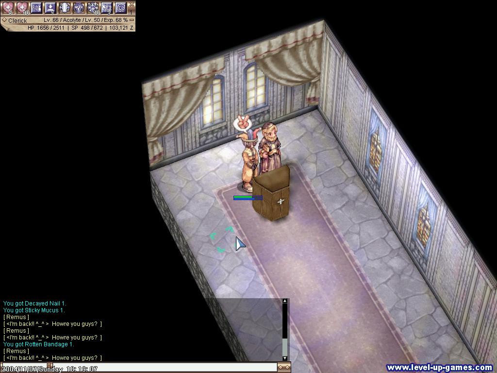 | 10062004 Rave: Whee! Perseverance is a crusader already! The test is less tedious than the other job change tests, although Perseverance was helped by his half-brother Raucous to gather the needed materials. How the heck is a level 53 swordie supposed to collect 10 short daenggie?!? Almost died even when I took the endurance test due to a horde of familiars and mandragoras, but mostly due to lag actually. Why the heck are the crusie equips available to high-leveled characters only? I would like to get my hands on overupgraded greaves and, umm, that 11 def plate armor. Gotta wake up Kendrick as well to forge an ice haedonggum /swt Rant: As expected, Juno patch in the public servers didn't go that well. I would prefer to wait for a week or two for all the brouhaha to die down before I delve into Fenrir again. Weird thing is that the problems the public servers are encountering right now were not experienced in Sakray. So much for testing /swt