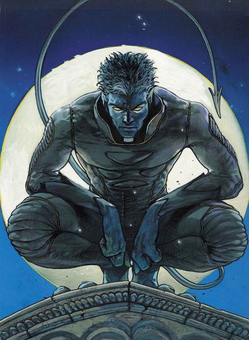 Kurt Wagner has resembled a demon in appearance since birth, but his powers of self-teleportation did not emerge until puberty. His unusual physical characteristics -- including indigo-colored fur, a prehensile tail, pointed ears, fang-like canine teeth, three-fingered hands and two-toed feet -- caused Kurt's mother to abandon her newborn son. Pursued by fearful villagers, she threw him over a waterfall to save her own life. Margali Szardos, a sorceress and gypsy queen, discovered Kurt less than an hour after his birth in a small roadside shelter in the Bavarian Alps and brought him to the traveling circus at which she worked as a fortuneteller. Kurt was raised by a motley crew of circus performers, who bore no prejudice against so-called "freaks," and Margali acted as his foster mother. His two closest friends were her natural children, Stefan and Jimaine. Long before his mutant talent emerged, Kurt demonstrated tremendous natural agility. By adolescence, he had become the show's star acrobat and aerial artist. Audiences assumed he was a normal human wearing a demon-like costume. Years later, a Texas millionaire who sought to cast Kurt in his American freak show purchased the Bavarian circus. Appalled, Kurt made his way to Winzeldorf, Germany, where his foster brother was living. But Stefan had gone mad and slain several children, and Kurt confronted him in an attempt to end his rampage. During the struggle that ensued, the young mutant unintentionally broke Stefan's neck. When the villagers discovered Kurt, he was assumed to be some sort of demon, responsible for the murders. The townspeople were about to kill him when they were psionically paralyzed by Professor Charles Xavier, who had come to recruit Wagner into the X-Men -- his team of masked, mutant adventurers. Hated and feared for his strange powers and frightening appearance, Nightcrawler stood with his teammates in opposition to those who would use their genetic gifts to subjugate humanity. As an X-Man, Kurt learned to teleport multiple times in a few seconds, allowing him to attack foes from unexpected directions with uncanny accuracy. On rare occasions, he could teleport more than one person at a time, but it strained him tremendously. When the weather-manipulating Storm lost the use of her mutant abilities for a short period, Nightcrawler was designated leader of the X-Men. After most of the X-Men appeared to die in battle, Nightcrawler teamed with the phase-shifting Shadowcat, his teammate and good friend; the time-tossed, telepathic Phoenix II; the shape-changing mutant known only as Meggan; and the mystically empowered Captain Britain, chosen protector of the United Kingdom. This unlikely quintet formed Excalibur, England's premiere squad of costumed champions. Captain Britain led Excalibur in name; in reality, the task fell to Nightcrawler, due to the other hero's incompetence. Even after it was discovered that otherworldly forces had blocked Captain Britain's ability to be a team player, Nightcrawler remained leader. Excalibur disbanded following the wedding of Captain Britain and Meggan, and Nightcrawler rejoined the X-Men. Always a devout Catholic, Kurt later left the team to enter the priesthood. Subsequently, Nightcrawler returned to the X-Men with a renewed commitment to Professor Xavier's dream of human and mutant coexistence.