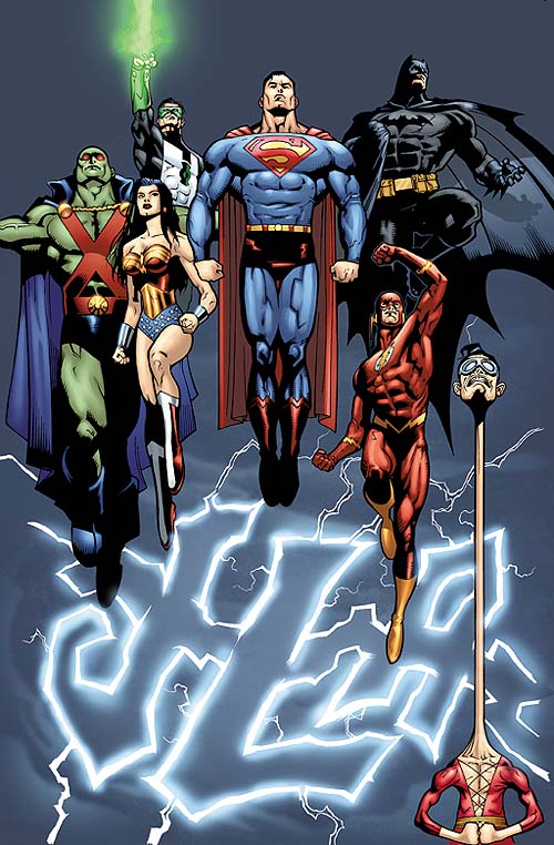 The Dark Guyver launches himself at Batman, claws forward, and ready to strike. Batman jumps onto the smoldering train tracks, and tells the other heroes to assemble. Virgil Hawkins transforms into the well-known teenage hero known as Static Shock. Wally West and Kyle Raynor, alias The Flash and Green Lantern, don't plan to sit idly by while this happens.