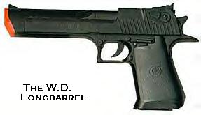 This is the handgun of choice for the leader of the White Dagger himself! Thats right, this is the official Longbarrel as carried by me Torak! This gun fires out half an inch of lead at one of the highest velocities known to gunkind. Of course, there is one slight downfall. Firing this gun may alert 2 or 3 cities of your presence. Needless to say, this is not to be considered on a covert operation.