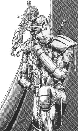 Larani appears most often as a tall maiden clad in a silver gown with red trim. About her waist and head are circlets of silver; she is beautiful of face, and strong, although she may not show her power. This is the aspect of the Lady of Paladins, one whom it is an honour to serve and protect, the guardian of knightly virtue, the warrior's lady, the ultimate object of chaste and courtly love. The Lady of Paladins is symbolic of more than womanhood, she epitomizes the worthwhile aspects of chivalry, duty to one's superiors and inferiors, striving to attain the unattainable, worthy goal, the quest to excel. In the teachings of Larani, it is not the outcome that matters most, but how that outcome was reached. Upholding the ideals of chivalry and loyalty to one's liege is of utmost concern. A knight may be slain by the foulest of fell beasts, as long as he has shown his courage throughout. A warrior may be defeated by the most evil of all knights, even if showing quarter lead to treachery and his death, but that he conducted himself with honor will win favor in her eyes. She encourages the soul to grow as a part of the whole in order to benefit from the strength of brotherhood. Most of all, if you haven't already figured this out, she is a stickler for the truth.
