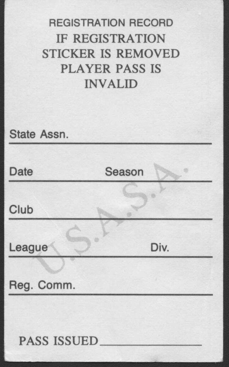 The following is a sample of the Player Passes that will be issued to each player on a Mid-State Team. The Player pass must be presented to the referee, in order to have a player participate in a game.