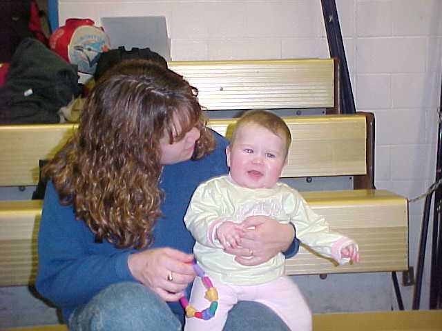 Michelle is trying to get Mya to smile for the camera