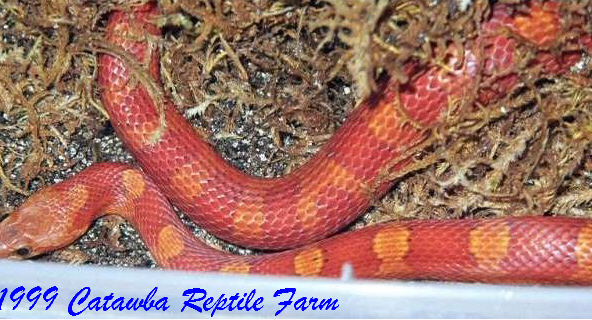 Blood Red Cornsnake: Elaphae guttata ssp. We have a small colony of adults that have a broad range of genetic traits in them. We never know what they might produce (albinos, ghost, normal). In time we should be able to narrow the odds down but for now it is wait and see. The babies are always beautiful and do very well from the start on pinks.