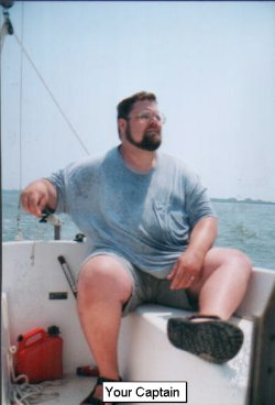 We motor back and finally reach the channel. Decide the "shifting sands" are too nerve racking without a depth finder, and turn around to head for Bird Island. Looks like lots of boats are there, just follow one in...slowly, slowly...50 more yards..."BAM!" CRAP!! Up the board again!! Stuck! Wind and current pushing us over...there goes the rudder!! It's out! Grab the rudder!! Pull the rudder into the cockpit - full reverse on the Merc 5.... Down the anchor! The anchor line is fouled in the locker? Up the anchor!! Rev rev.... We're moving! Back to the channel! Slowly, slowly, OK - down the board! Yeah! Putt putt putttttt...the engine stops! Out of gas!! Try to crank it again! No luck!! Drifting with wind towards opposite shore. Think fast... Put the rudder back on! Help me get this thing over the side...the current is pushing it away - wrestling with it...there!