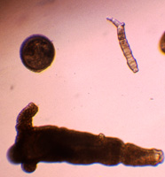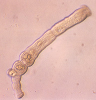 Intramolluscan development of the marine echinostome avian fluke, Himasthla elongata, is similar to that of other members of family Echinostomatidae. It involves the sequential production of several distinct generations including Littorina littorea-infective miracidia, primary or mother sporocysts, mother and daughter rediae and cercariae, the infective larvae for the intermediate host - blue mussel, Mytilus edulis. Definitive host, seagulls, become infected by eating mussels with encysted metacercariae (Werding 1969). Here we report the primary in vitro culture of H. elongata rediae maintained in axenic conditions. This is the first reported cultivation of trematodes infecting marine prosobranch mollusc.