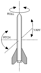 unstable rocket will tumble. The pitch axis and the yaw axis are the most important to insure stability across because even the slightest movement in either of these two directions can easily cause the rocket to go offcourse. The roll axis is least important because movement across it will not affect the rocket's flight path.