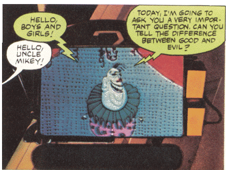 about good and evil by kicking Zip's stuffed Uncle Mikey doll