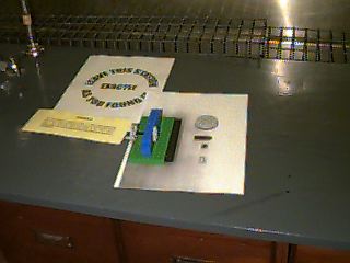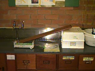 - 1 trolley, inclined plane, spring balance, Small sign attached to