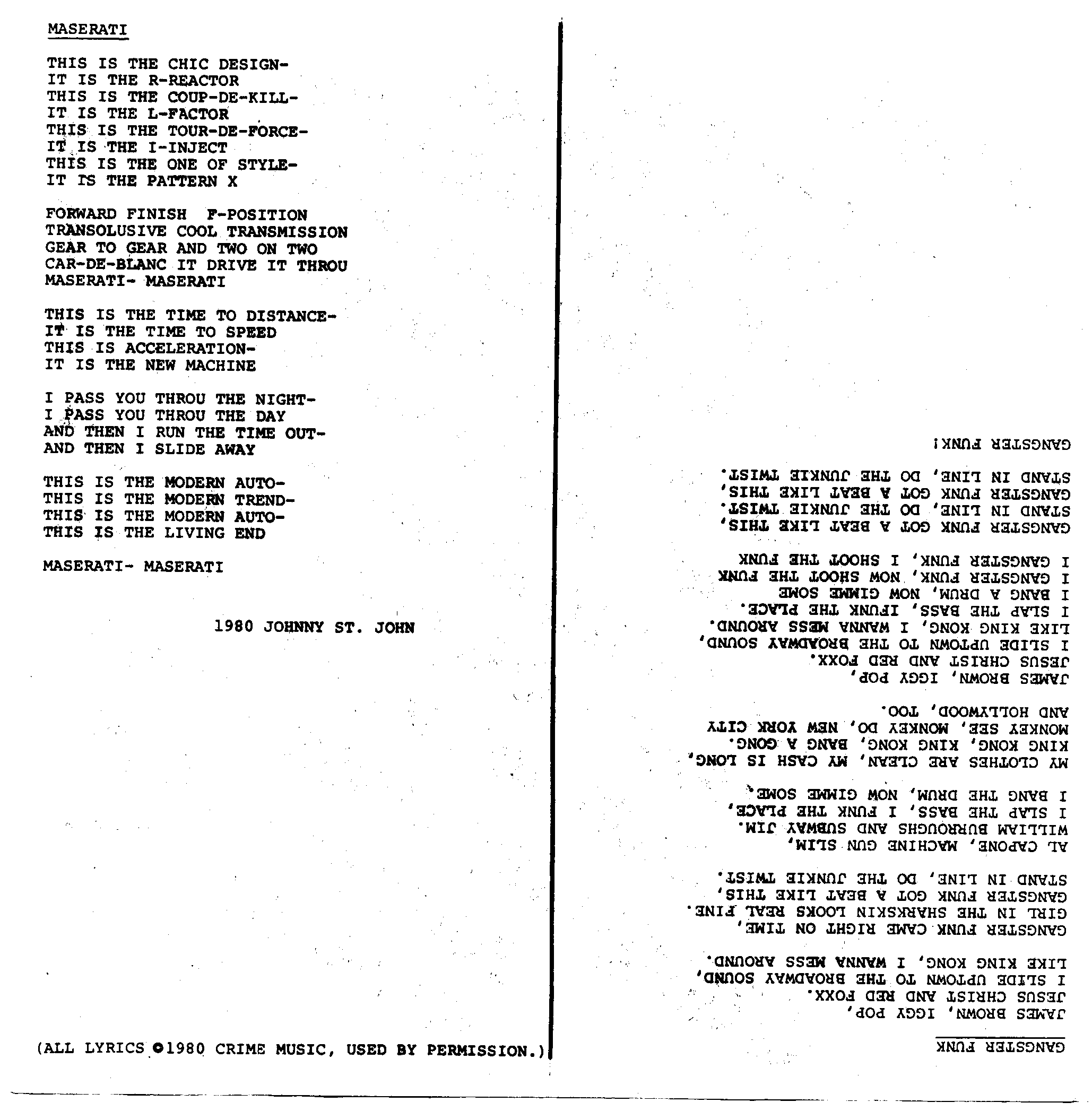Gangster funk/Maserati insert (not included with all copies)