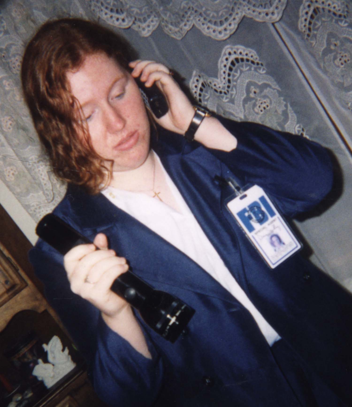 Before we went to the party, we went to Pizza Hut. Someone there asked me if I was working with the local branch office! And someone at Anne's work asked her if I was really with the FBI, (after all, they'd always thought I was a student at uni!). To be Scully for a day was a BLAST!!! I highly recommend it. Hey, why wait until Halloween?