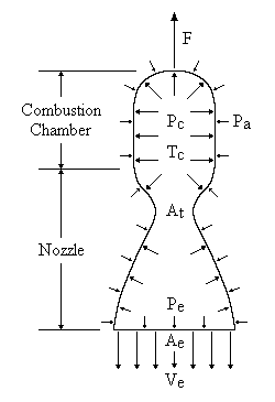 The figure to the right shows a combustion chamber with an opening, the nozzle, through which