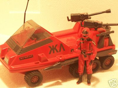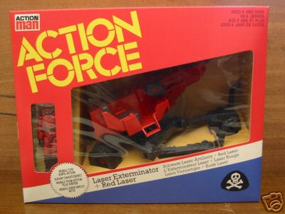 Baron Ironblood and the Enemy opposed the Action Force. They included the Laser Exterminator - a red and black repaint of the HAL laser cannon. A repaint of Cobra Commander - Red Laser - piloted the Lazer Exterminator.