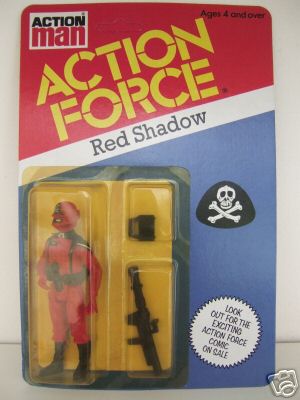 against the Enemy, Baron Ironblood and the Red Shadows. At this point, many early G.I.Joe figures and vehicles were recolored, renamed, and incorporated into the Action Force line. However, the original Palitoy figures were still articulated like Star Wars figures.