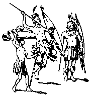 Cuando un muchacho tenía la edad necesaria para ser guerrero, se le despojaba de sus vestidos y se le pintaba todo el cuerpo de blanco; se le daba en seguida un escudo para que se protegiese, y una pequeña lanza para que con ella pudiera matar a los animales y a sus enemigos, y se le abandonaba en la selva.