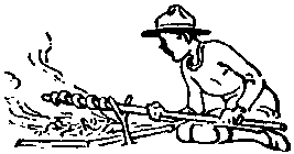Cada patrulla construirá sus ganchos y colgadero para sostener sus marmitas sobre el fuego. El grabado muestra algunas maneras de hacerlo.