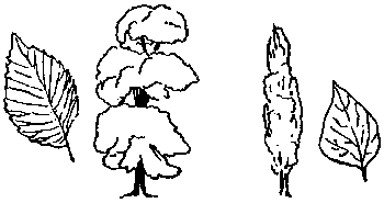 El Scout, por tanto, deberá proponerse aprender los nombres y el aspecto de los árboles que haya en su localidad. Deberá tomar una hoja de cada especie y compararla con la hoja del árbol y así llegará a conocer el aspecto general de cada clase, de tal manera que pueda reconocerlos a distancia, no solamente en el verano, sino también en el invierno. Algunos árboles tienen formas típicas, como puede verse en los dibujos del roble, el álamo y el olmo. Tratad de encontrar otros, digamos de pino, abedul, sauce, etc.
