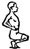 6. Para las piernas, los pies y sus dedos. En la posición de firmes, descalzos, poned vuestras manos sobre las caderas y levantaos sobre las puntas de los pies, doblad las rodillas lentamente hasta que quedéis sentados en cuclillas, teniendo cuidado de conservar los talones despegados del suelo todo el tiempo. Luego levantaos despacio, hasta quedar en la posición original.