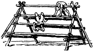 Tomad vuestro bordón con la mano derecha, cerca del regatón, perpendicular mente y lanzadlo al aire, no muy alto al principio, cogiéndolo cerca del regatón, a caer de nuevo, con la mano izquierda. Lanzadlo ahora con esa misma mano y recibidlo con la derecha y así sucesivamente hasta que lo podáis lanzar cien veces sin dejarlo caer una sola.