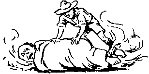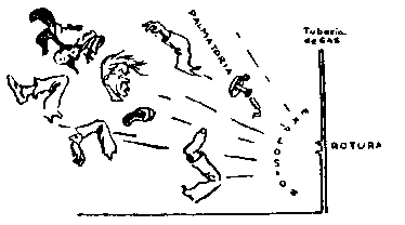 La manera de detener a un caballo desbocado, no es la que emplean muchas personas, de correr a ponérsele enfrente y espantarlo moviendo los brazos. Lo que hay que hacer es correr a la par con él, asirse de la vara con una mano para no caerse, y con la otra tomar la rienda, tirando de ésta hacia vosotros y volteando al caballo hacia alguna pared o alguna casa obligándolo así a detenerse. Por supuesto que, para un muchacho de poco peso, esto es muy difícil de llevar al cabo. Así pues, la parte que más bien podéis tomar vosotros en esta clase de accidentes, es la de atender a las personas atropelladas o heridas por el caballo desbocado.