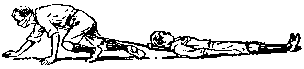 1. Inmediatamente después de sacar del agua al paciente, lo acostaréis boca abajo, con un brazo extendido y la cabeza del lado, reclinada sobre el otro brazo. Poneos a horcajadas por encima de él, mirando hacia su cabeza.