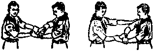 Dos Scouts pueden hacer una silla de manos, cogiendo cada uno su muñeca izquierda con su mano derecha y la muñeca derecha del otro con su mano izquierda. Si hubiere necesidad de respaldo, la silla se hará de tres manos solamente y uno de los Scouts pondrá su mano sobre el hombro del otro, formando con su brazo el respaldo.
