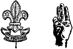 tres hojas de la insignia Scout y los tres dedos de la seña