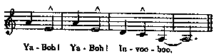 Coro: ¡Invooboo Ya-Boh! ¡Ya-Boh! ¡Invoobo! Que significa: