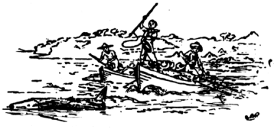 Dos canoas, cada una tripulada por una patrulla, toman generalmente parte en la pesca. El Guía hace las veces de capitán, el Sub-Guía de arponero, los demás reman.