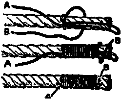 Para evitar que el cabo de una cuerda se deshilache, hay necesidad de hacerle en una punta un amarre especial, lo cual se consigue enrollando un pedazo de cáñamo, varias veces, alrededor de la punta de la cuerda, de forma que los extremos del cáñamo no se vean. Existen varias maneras de hacer esto: el grabado muestra una fácil y eficaz.