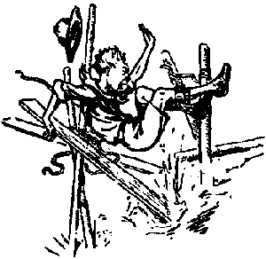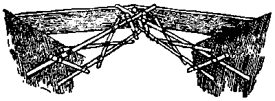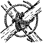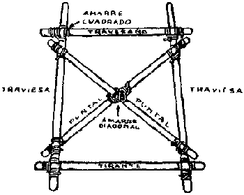 Diagonal. Comiéncese con el nudo de leñador alrededor de los dos postes. Dénse vueltas alrededor para atortolar. Termínese con el ballestrinque. |