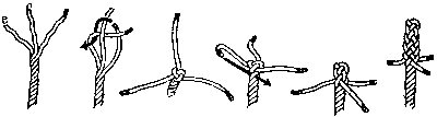 En el oeste de África no contábamos con cuerdas, por lo que teníamos que valernos de plantas trepadoras resistentes y mimbres delgados o ramas largas flexibles, las que todavía hacíamos más manejables pisando una punta y torciendo la otra lo más posible, con la mano. Con el sauce y el avellano se hacen buenos mimbres. Es imposible hacer toda clase de nudos con estos materiales tal como se hacen con una cuerda, pero, en general, se puede hacer un amarre de leñador.
