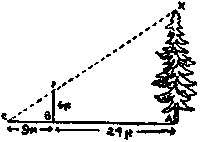 Para determinar la altura de un objeto, tal como una casa o un árbol, camínese una distancia de 9 metros y ahí clávese el bordón, dejando en el lugar a otro Scout para que lo sostenga en posición vertical; camínese enseguida un metro más, hasta completar 10. Colóquese el ojo al nivel del suelo en este lugar, y diríjase la vista hacia la copa del árbol mientras el otro Scout mueve la mano a lo largo del bordón, hacia arriba y hacia abajo, hasta que vuestro ojo, su mano y la copa del árbol queden en una misma línea. Mídase sobre el bordón, en decímetros, la distancia del suelo a la mano, y ésta, en metros, será la altura del árbol.