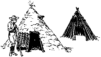 Si la tienda o choza resulta demasiado caliente al sol, hay que colocar sobre el techo unas mantas o capas más espesas, de paja. Mientras más grueso sea el techo, más fresco será el refugio durante el verano. Si la choza es muy fría, engruésense los muros en su parte más baja, o constrúyase un muro bajo, de césped, como de treinta centímetros de altura, alrededor de la base por la parte de afuera.