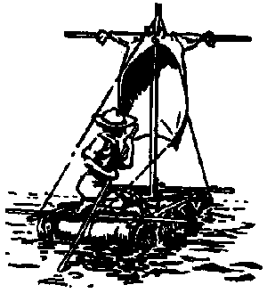 Las balsas pueden ser usadas también para cruzar ríos. Éstas pueden construirse sobre la misma agua, si el río no es muy profundo, o fuera de ésta en caso contrario. Cuando la balsa ha sido terminada, sosténgase por punta río abajo, y empújese la otra, dejando que la corriente la coloque en posición.