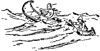"En una carrera de cuatro horas cruzando una bahía abierta, encontraréis millares de olas de las cuales no hay dos parecidas y que cualquiera de ellas puede, con suma facilidad, llenar vuestra canoa de agua si no la cruzáis correctamente", así escribe Stewart E. White en su delicioso libro "The Forest", y enseguida nos dice cómo hay que tratar este problema. Cuando las olas azotan la proa, hay que remar del lado de sotavento. Cuando la canoa remonta una ola, hay que permitir que la cresta levante un poco la proa, pero en el momento en que comienza a descender la canoa por el otro lado de la ola, hay que torcer inmediatamente el remo para volver al curso que se llevaba.