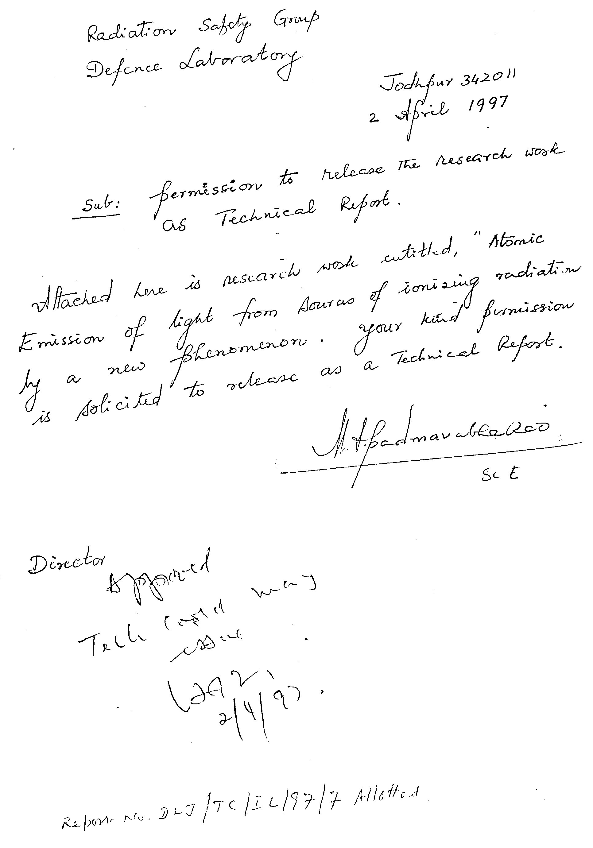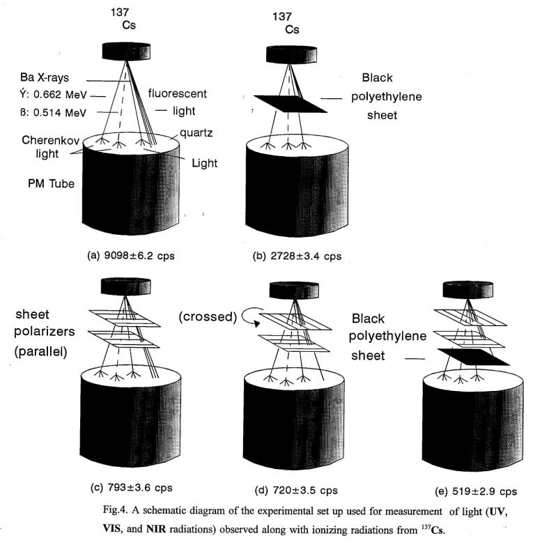In fact, while studying phosphorescence of the double sulphate of potassium and uranium, radioactivity has been discovered by Henry Becquerel in 1896 (Becquerel, 1896). His observation on phosphorescence from the chemical compound differs entirely from the fluorescent light emission currently reported from radioactive atoms, like the uranium atoms. The light emission observed from radionuclides available mostly as radiochemicals such as 137CsCl, differs also from very fast cross luminescence reported to have observed from CsCl on exposure to ionizing radiation at 300 K by Van Eijik (1993). In 137CsCl, the ionizing radiations is claimed to cause light emission within the 137Cs atoms, whereas in the later case of CsCl both Cs and Cl atoms participate in the scintillation mechanisms.