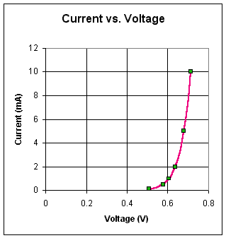 | Voltage Across Resistor (mV) | Input Voltage (V) | Voltage Across Diode (V) | Current Through Diode (mA) |
