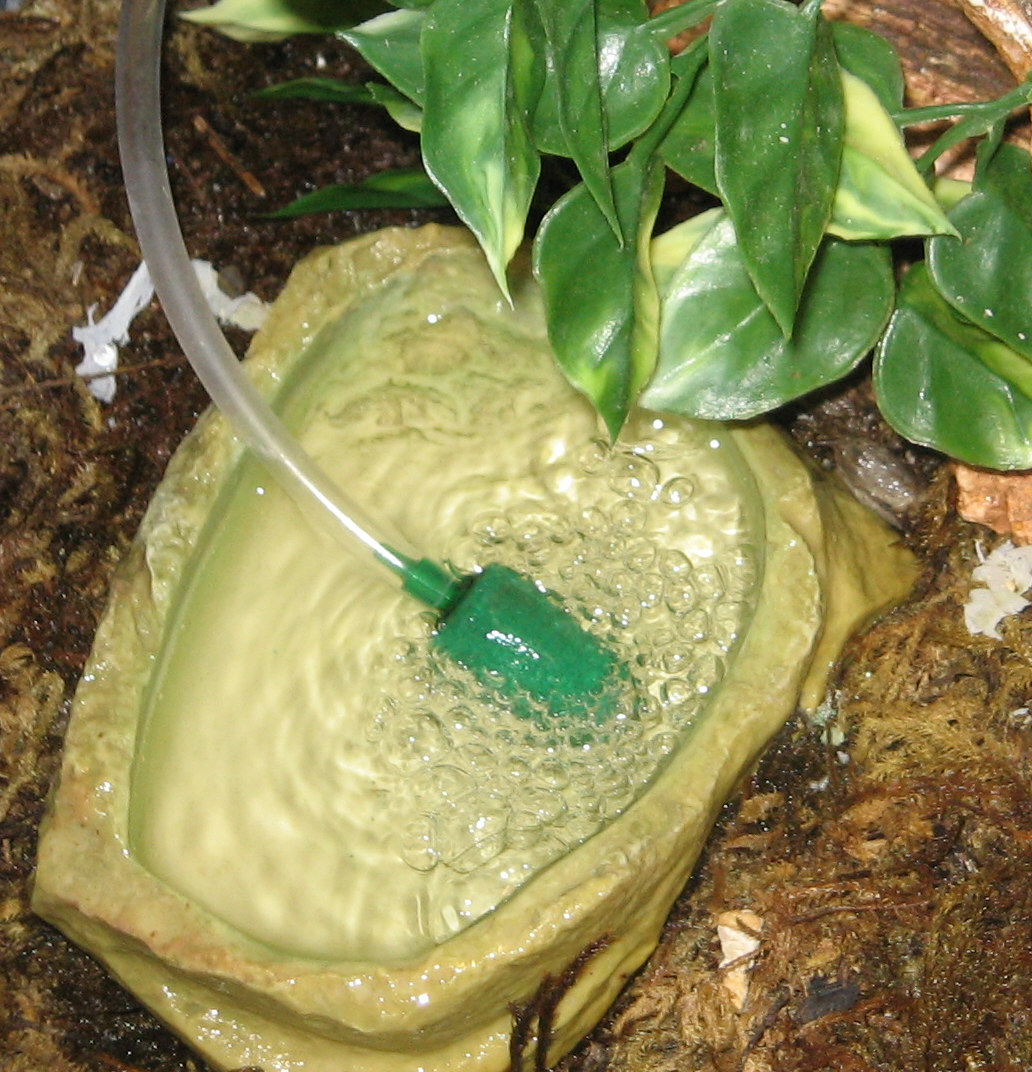 Water dish with the bubbler which provides water plus humidity.