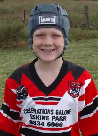 Bradley is a new-comer to football and is number 4 for the U8/2's and loves scoring tries, side-stepping, running and playing a good tough game of football. He wants to be a star football player when he's older - maybe for his favourite team - South Sydney Rabbitohs...? Bradley also likes to eat McDonalds, watching the Nikelodeon channel, wrestling and he enjoys being encouraged and rewarded when he makes a good effort. He doesn't enjoy school or being bored though. His birthday is 3rd July 1995.