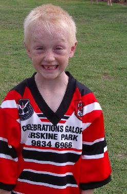 Corey played with the 7/1's team last year and has joined our team this year playing as number 10 for the U8/2's. In our games he loves to have lots of runs and score tries also. His favourite team and player are Ryan Girdler & Penrith Panthers. Corey wants to be a Policeman when he grows up. He just loves to eat pizza, and likes Dragon Ball Z, watching TV and playing with mates. Though he doesn't enjoy school too much. His birthday is 12th January 1995.
