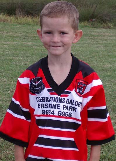 Daniel played with the 7/1's team last year and we are happy to have him playing as number 11 for the U8/2's this year. He loves playing a good game and scoring lots of tries, and wants to be a famous footy player like his favourite Bulldogs - Willie Mason and Hazem Elmasri when he's older. Daniel likes to eat McDonalds and he likes Pokemon and "Kangaroo Jack" but he doesn't like losing footy games! His birthday is 20th September 1995.