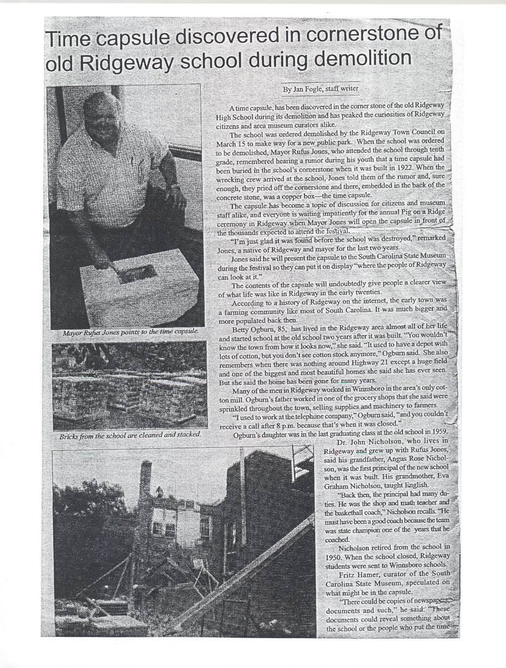 This was my first assignment for the Blythewood Country Chronicle, and it turned out fantastic, if I do say so. I didn't take the pictures, but I did all the research and writing. Mrs. Ball, my editor and publisher, changed my lead a little, but that was the only part touched.