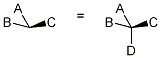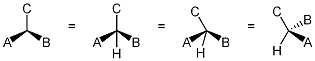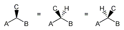 solid wedged or hashed wedged) positioned at any angles. These depictions are acceptable, but not preferred because they can typically be drawn with fewer wedged bonds. If these depictions are used, the implied hydrogen is assumed to be opposite the A-B angle relative to the C substituent: