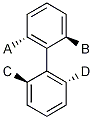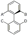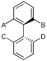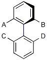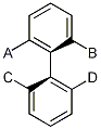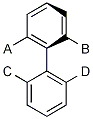 Hindered biaryls should always be drawn with hashed and wedged bonds within the aryl rings and directly connected to the single bonds about which they rotate. Additional bonds within the aryl systems may also optionally be drawn with solid wedged or hashed wedged bonds. Preferably, one ring system of each pair should be drawn exclusively with plain bonds, and the other should be drawn with two solid wedged bonds, one directly connected to the rotating bond and one opposite. In even-membered systems, the bond between the solid wedged bonds should be depicted as bold and unwedged if it does not itself participate in a ring fusion.