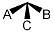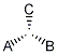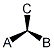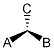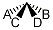 180° (ideally, 120° as shown here) and the wedged bond opposing the A-B