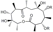 In some cases there are few appealing alternatives to having stereogenic atoms at some re-entrant positions. A classic example is the core ring of the antibiotic Erythromycin A, shown below. Traditionally, that ring has been depicted with 120° angles at each atom of its 14-membered ring, which results in two stereogenic centers at re-entrant atoms. In such a case, the substituents at the re-entrant atoms should be oriented inwards to the ring as well. It would be preferable to depict the ring in a way that did not require any stereogenic centers at re-entrant atoms.
